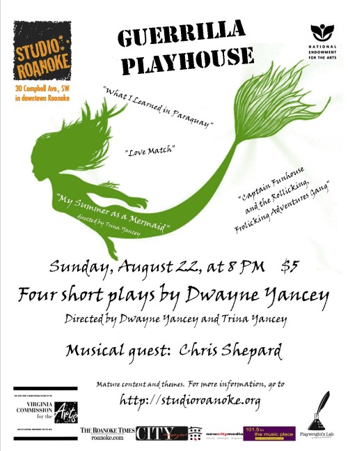 I had four short pieces done at Studio Roanoke on August 22, 2010 as part of its Guerrilla Playhouse program.