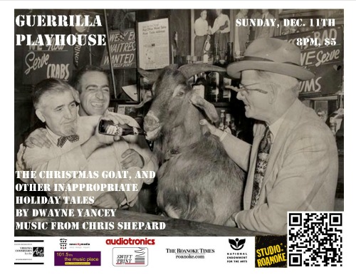 Here’s the poster that Studio Roanoke (in Roanoke, Va.) used for a collection of my short Christmas pieces, which played under the title “The Christmas Goat and Other Inappropriate Holiday Tales” on Dec. 11, 2011.