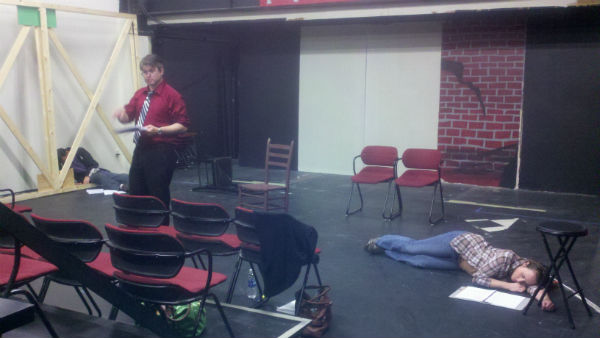 Here are some rehearsal photos. You’ll notice that many of the players are laying down on the floor. That’s because their characters are dead.