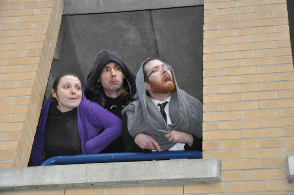 Two of my short pieces were produced in June in the annual “Asphalt Jungle Shorts Festival” in Kitchener, Ontario. This is a walking-tour theatre, where patrons buy a ticket and are led around downtown, where they encounter theatre popping up at various places. (More details on the festival here and descriptions of each piece here.)