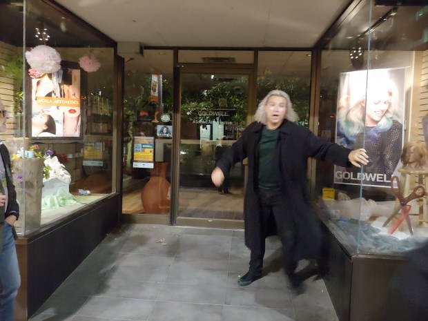 Once again, one of my short pieces was performed in the annual Asphalt Jungle Shorts festival in Kitchener, Ontario. This is a walking tour festival where the audience is led around downtown and short pieces of live theatre break out at various points. This year my piece was THE GOVERNMENT’S SECRET TIME TRAVEL PROJECT EXPOSED. It was directed by festival founder Paddy Gillard-Bentley and performed by Mason Miceveski.