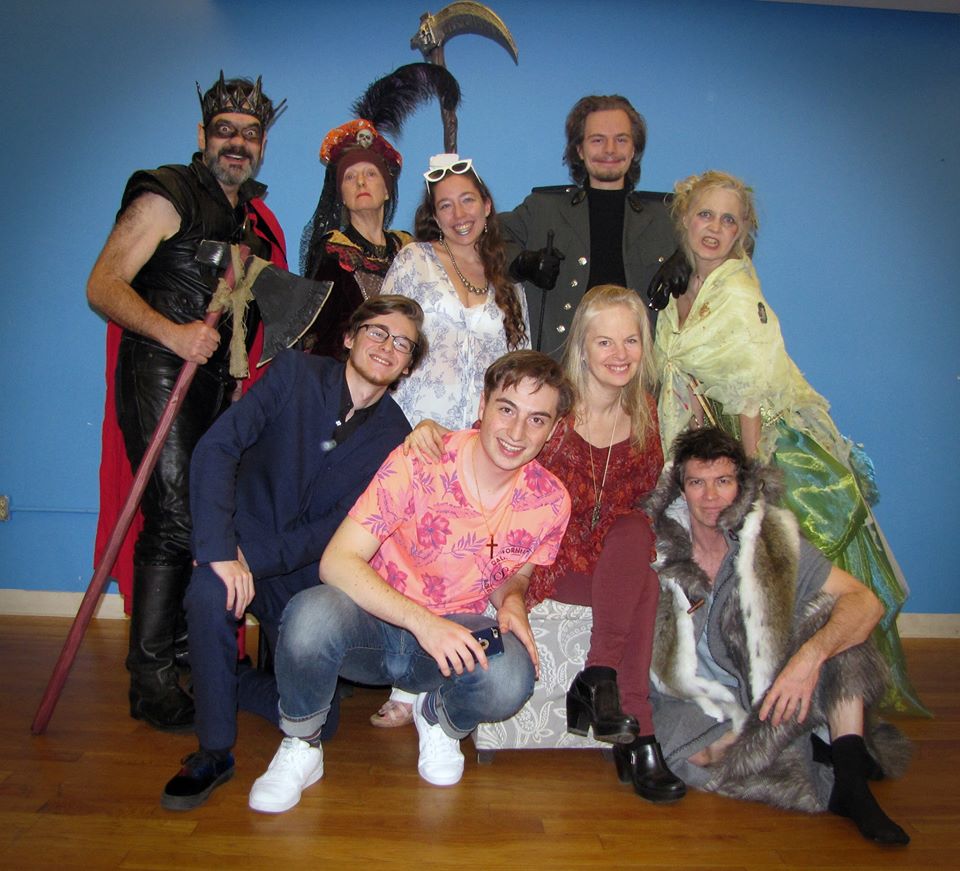 Back row, from left: War, Death, Ghosting, Trolling, Pestilence. Front row: Deletion, Viral, director Leslie Kincaid Burby, Famine