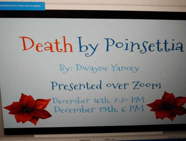 Possibilities Theatre in Chicago produced my Christmas one-act DEATH BY POINSETTIA. It was directed by Rashaad Bond but, alas, I don’t have the names of the two wonderful performers.