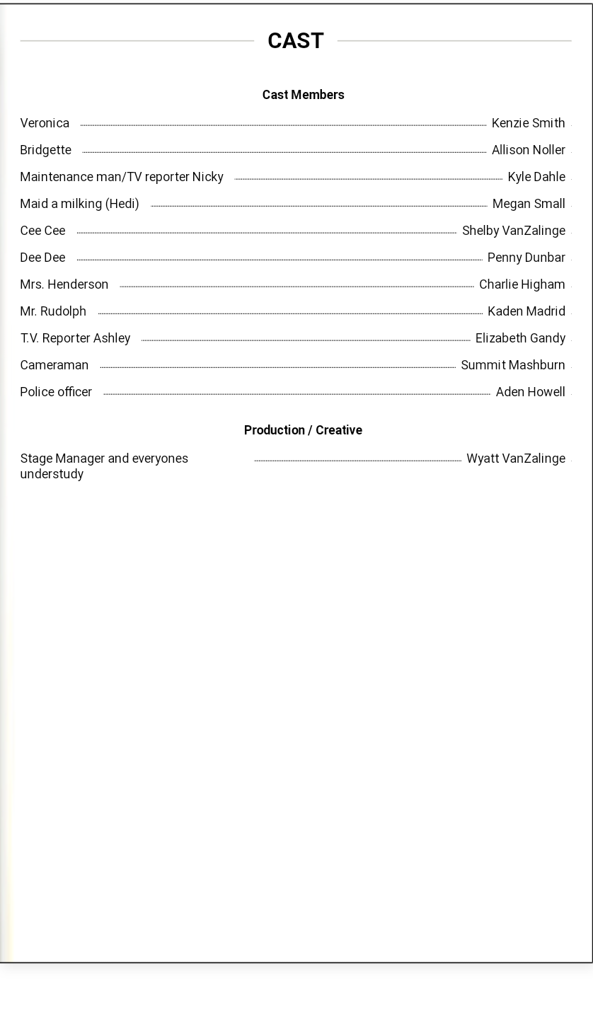 Del Norte High School in Del Norte, Colorado contacted me, gosh, way back in 2020 about producing ON THE THIRTEENTH DAY OF CHRISTMAS as a Christmas show. Then covid intervened. The show was off, then it was on, then it was delayed . . .and, frankly, I’d given up hope. But the show must go on! On February 18 and 19 the show finally managed to stage the show. Director Bill Sauvinge shares these photos.