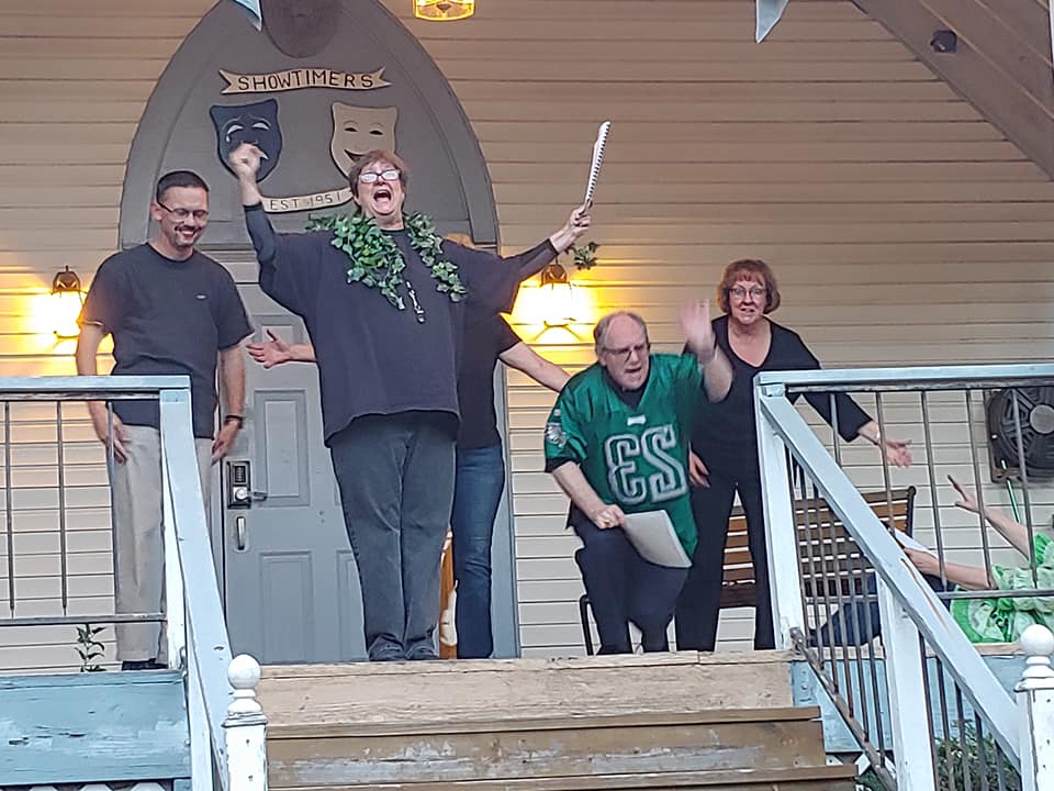 In January, Showtimers community theatre in Roanoke, Virginia contacted me and asked if I would write them a script for a special event they were planning in May. What they wanted was a “silly script for a cast of six” that they’d do as an outdoor reading. The catch is that the cast wouldn’t see the script until they stepped on stage. So I wrote the script — THE SHOW MUST GO ON (WITH SOME EXCEPTIONS. To test it out, I held a private Zoom reading with a cast from Canada. Let’s give a shout-out to that cast: