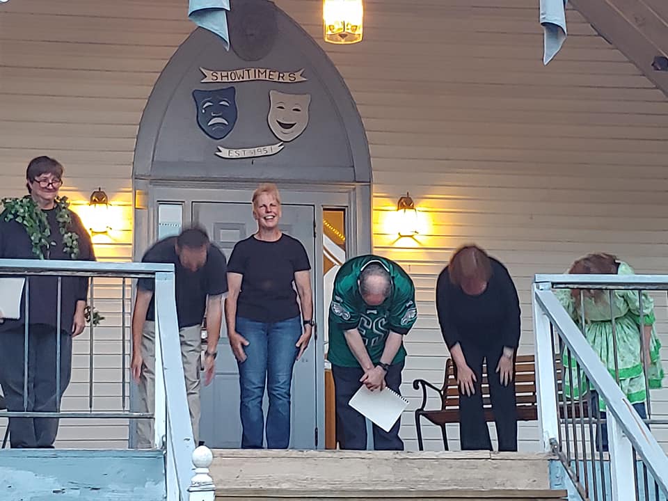 Curtain call. From left: Cathy Fisher, Owen Merritt, Bev Amsler, Norm Ferguson, Jayne Brill, Sherilyn Lawson.
