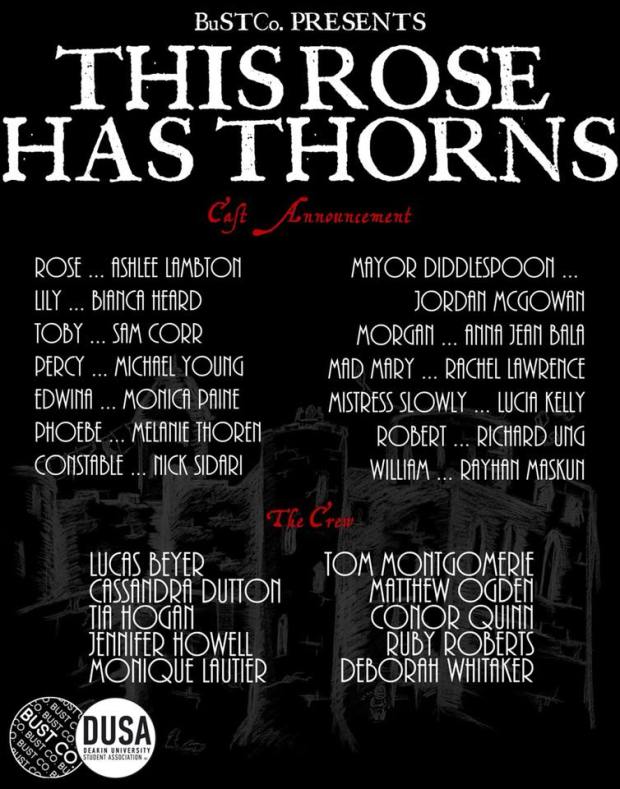 The premiere of THIS ROSE HAS THORNS, playing in Melbourne in April 2018, now has a cast!