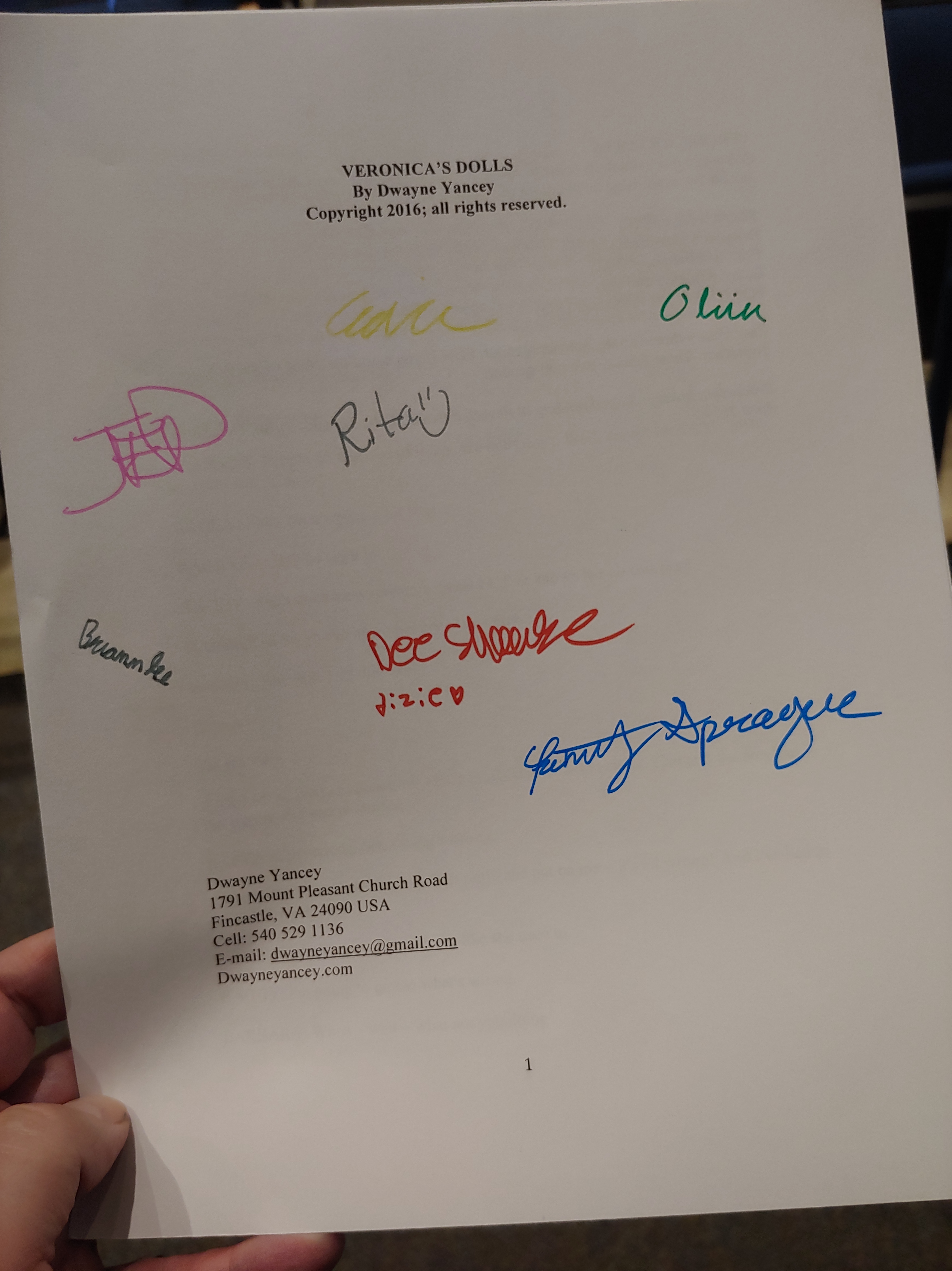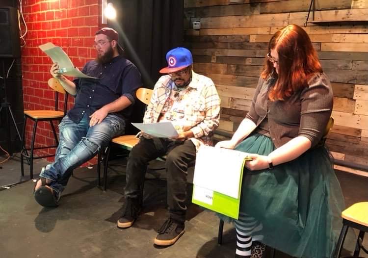 When my friend Randy Walker asked me if I’d like to contribute a performance to an evening of entertainment that he was putting on to raise money for his church’s pollinator garden, I knew immediately which one: THE SANDSTORM. It’s one of my most-produced 10-minute plays and one of the easiest to produce, even if the two characters are Martians. Amber Carderelli and Sidney Grutz agreed to come over to Roanoke to perform the show. Amber most recently directed REVENGE OF THE FAIRY QUEEN at Renaissance Theatre with Sidney as the fairy queen.